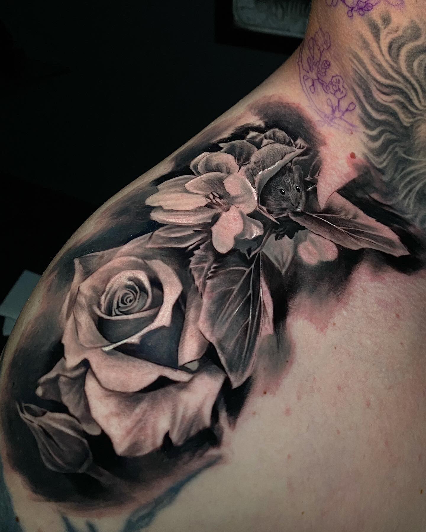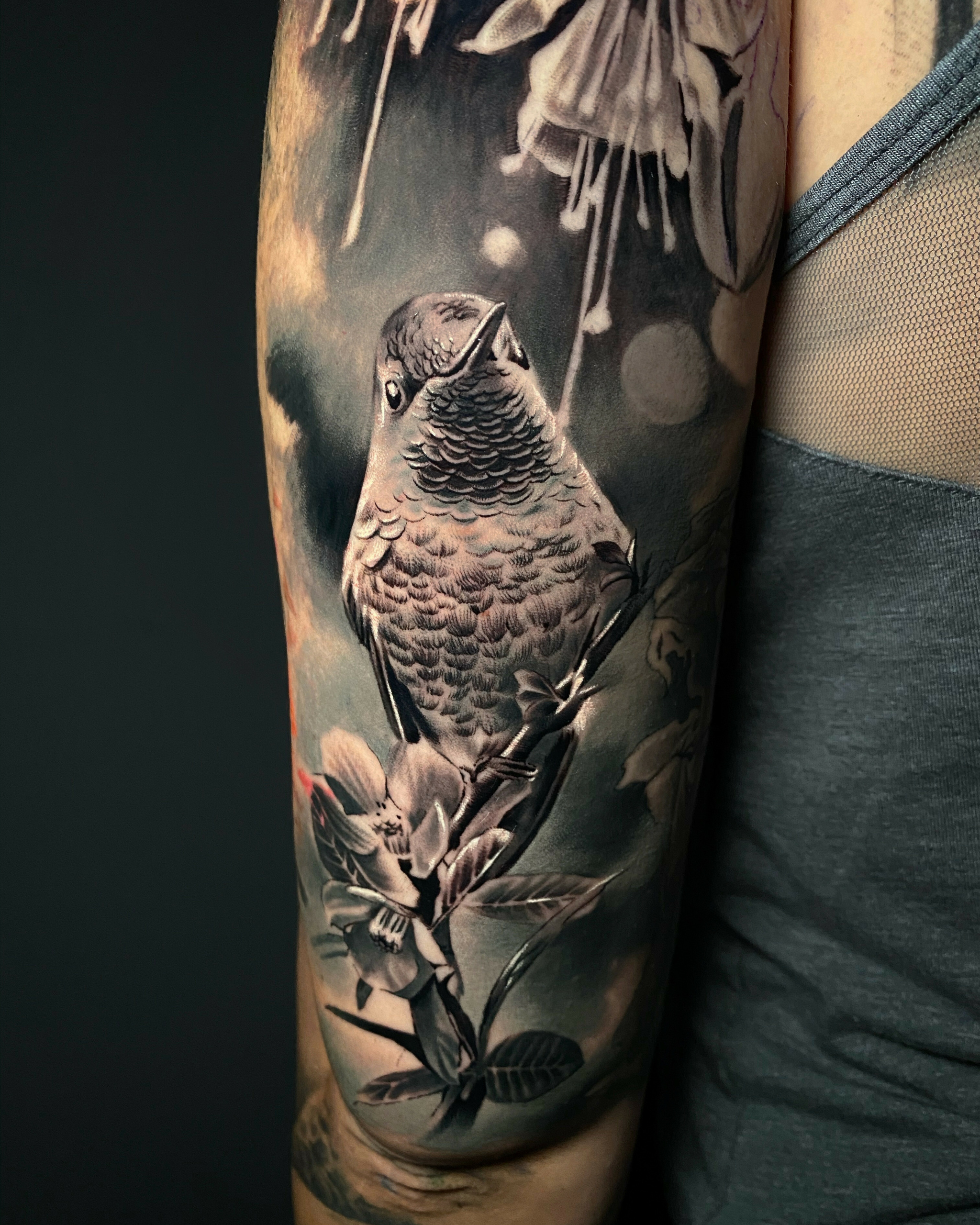 Realismus-Tattoos lassen sich sowohl in intensivem Farbrealismus als auch in Schwarz-Grau umsetzen:
