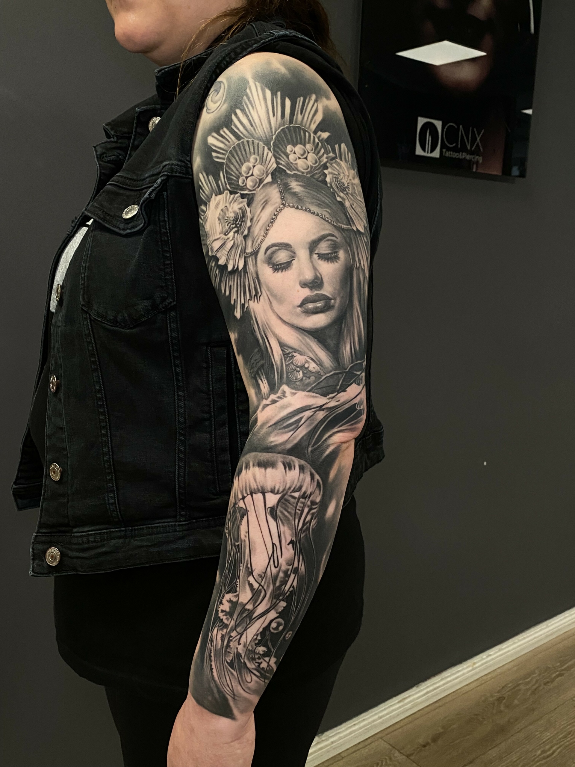 Bei CNX Tattoo Berlin im Prenzlauer Berg arbeiten unsere erfahrenen Artists mit modernster Technik, ruhiger Hand und viel Erfahrung, um deine Ideen in beeindruckende Tattoos zu verwandeln. Ob du ein Portrait eines geliebten Menschen, ein Tier, ein Objekt oder eine Szene aus der Natur möchtest – wir nehmen uns Zeit für detaillierte Beratung, Designentwicklung und Platzierung.